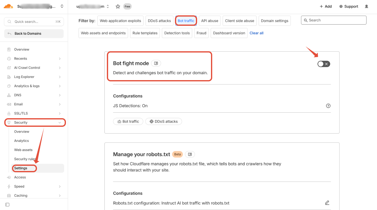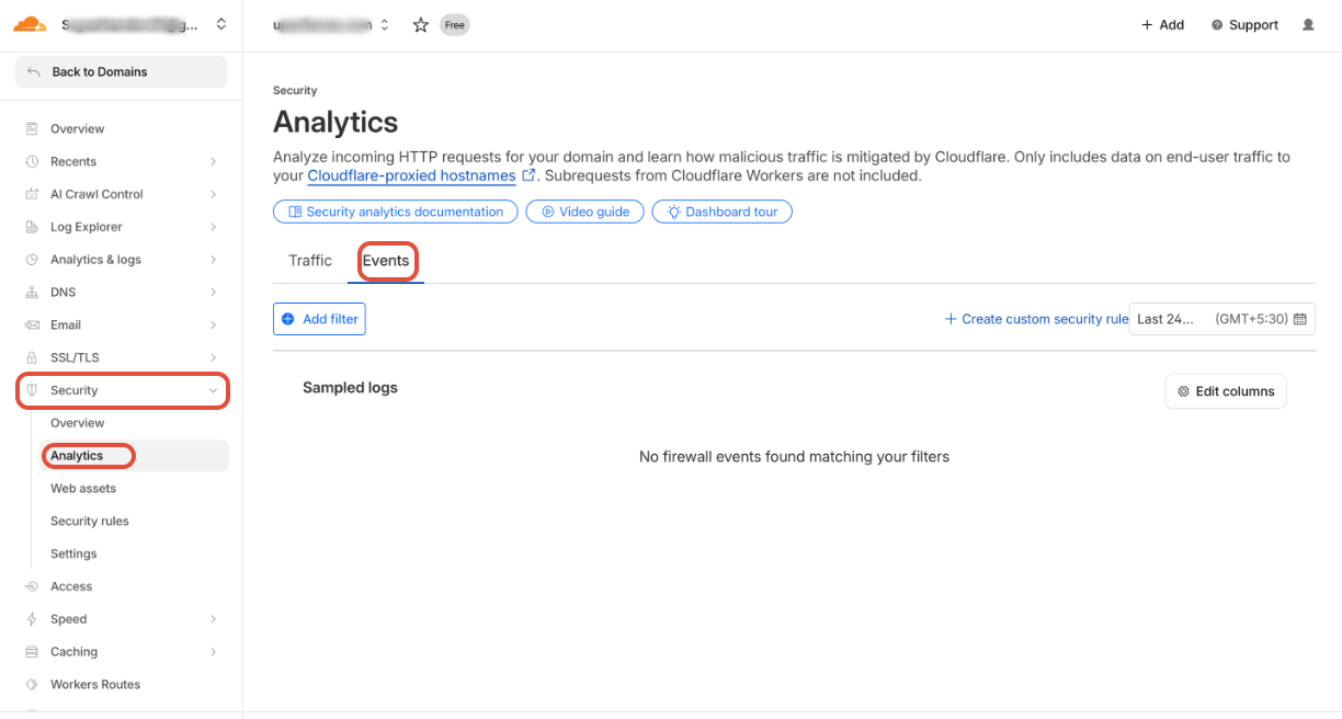- In CloudFlare Dashboard, go to "Security" > "Security rules" and click on "+ Create rule" > "Custom Rules" button to create a new rule.